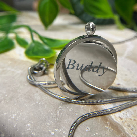 Regular price $70.00Regular priceUnit price / perSale price $70.00Choose options Pawprint Engraved - Rotating Circle Pendant Necklace | Pet Keepsakes